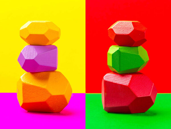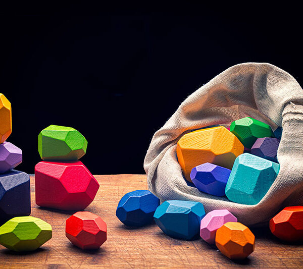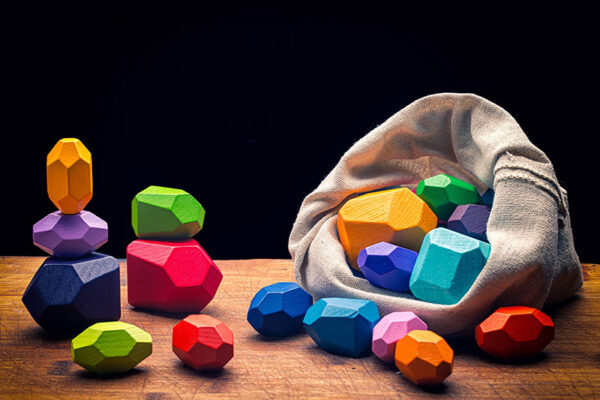 Ein von der Montessori-Methode inspiriertes Holzspiel für Spass, Kreativität und Motorik. Bunte Holz-Klötzchen mit eigenwilligen Formen im praktischem Leinensack. Sets mit 16 oder 21 Teile, empfohlen für Kinder ab 3 Jahren.