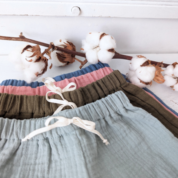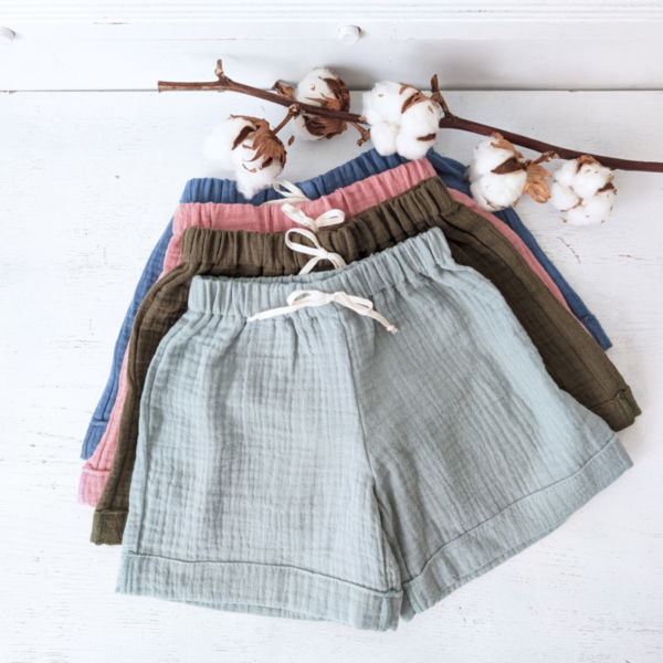 Diese lässige und gemütliche Shorts aus weichem und luftigen Musselin (100% Bio-Baumwolle) ist der ideale Begleiter für den Sommer. Der leichte, doppelt-gewebte Stoff sorgt besonders an heissen Tagen für ein angenehmes Tragegefühl, da er ausreichend Luft an die Haut lässt und trotzdem vor der Sonne schützt. Ohne lästige Knöpfe und Reissverschlüsse kann die Hose schnell an- und ausgezogen werden und erleichtert das An- und Ausziehen.